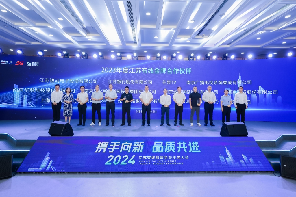 8月21日下午,以“攜手向‘新’ 品‘質’共進”為主題的2024江蘇有線數(shù)智全業(yè)生態(tài)大會在寧舉辦,銀河電子作為我國數(shù)字電視智能終端設備專業(yè)提供商受邀參會。大會期間舉行了“2023年度金牌合作伙伴”頒獎儀式,銀河電子憑借優(yōu)質的服務、可靠的品質、及時的交付能力,被授予2023年度江蘇有線金牌合作伙伴。